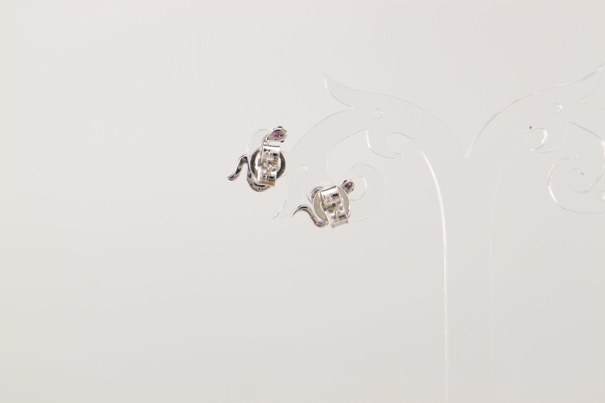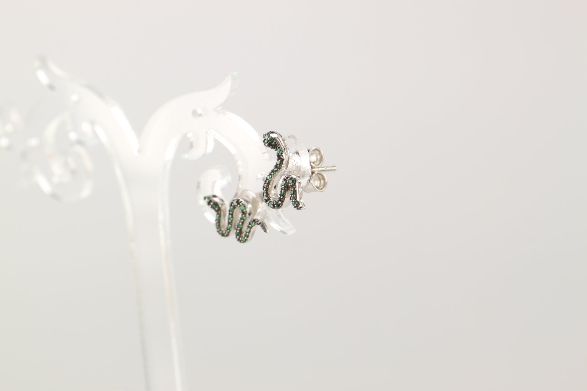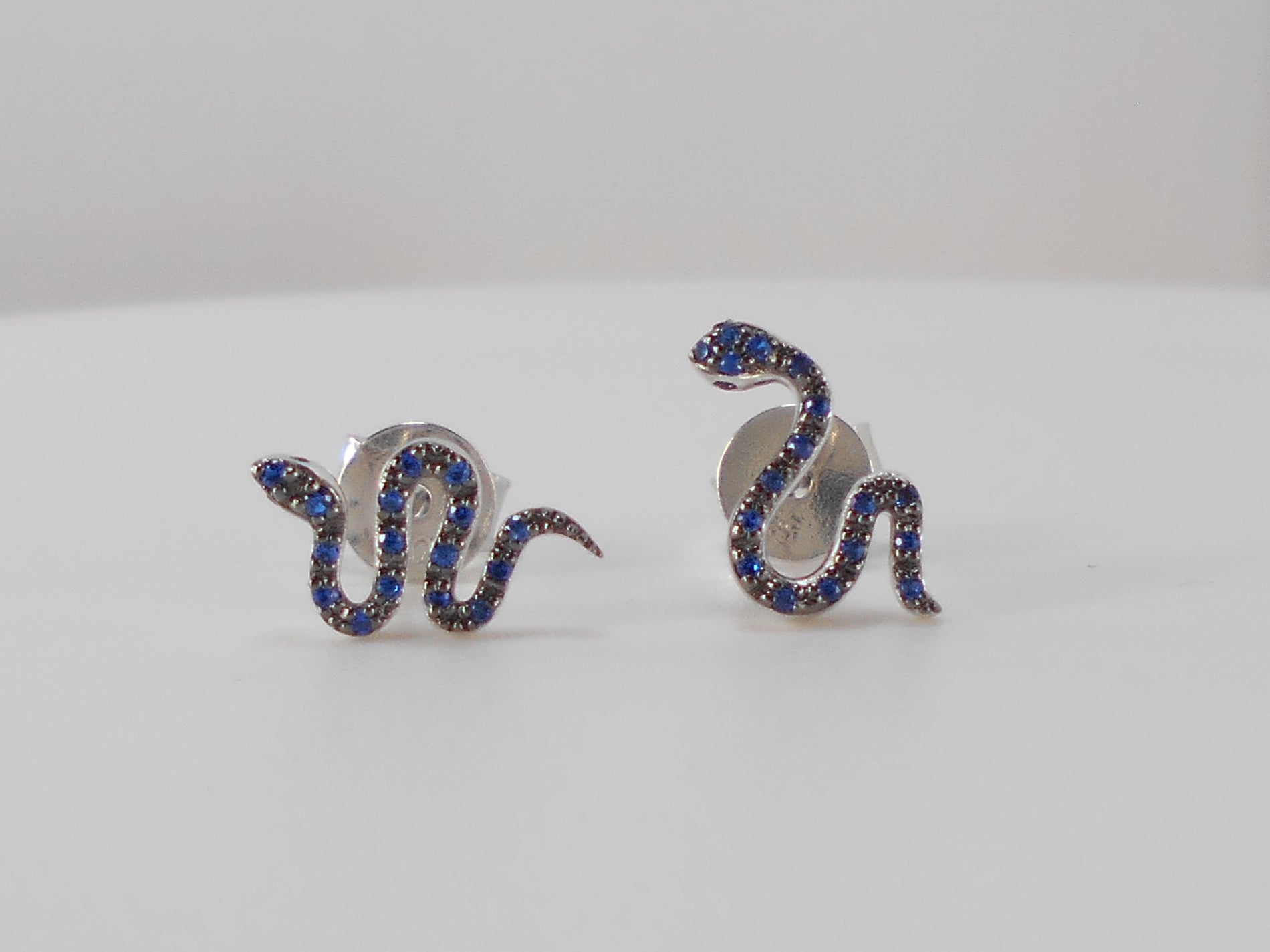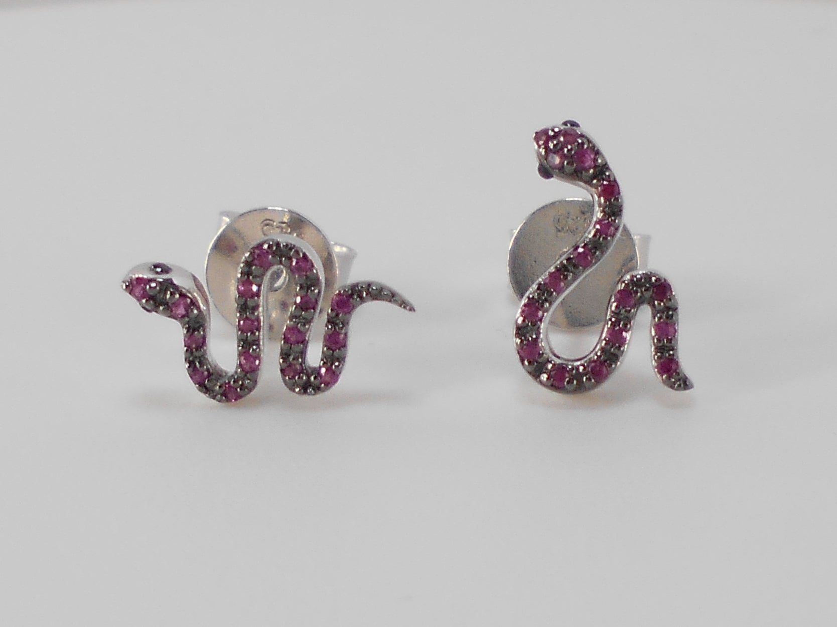 925/1000 Solid Silver With White Black Rhodium Plated Pink Blue Green Stones Snake Earrings