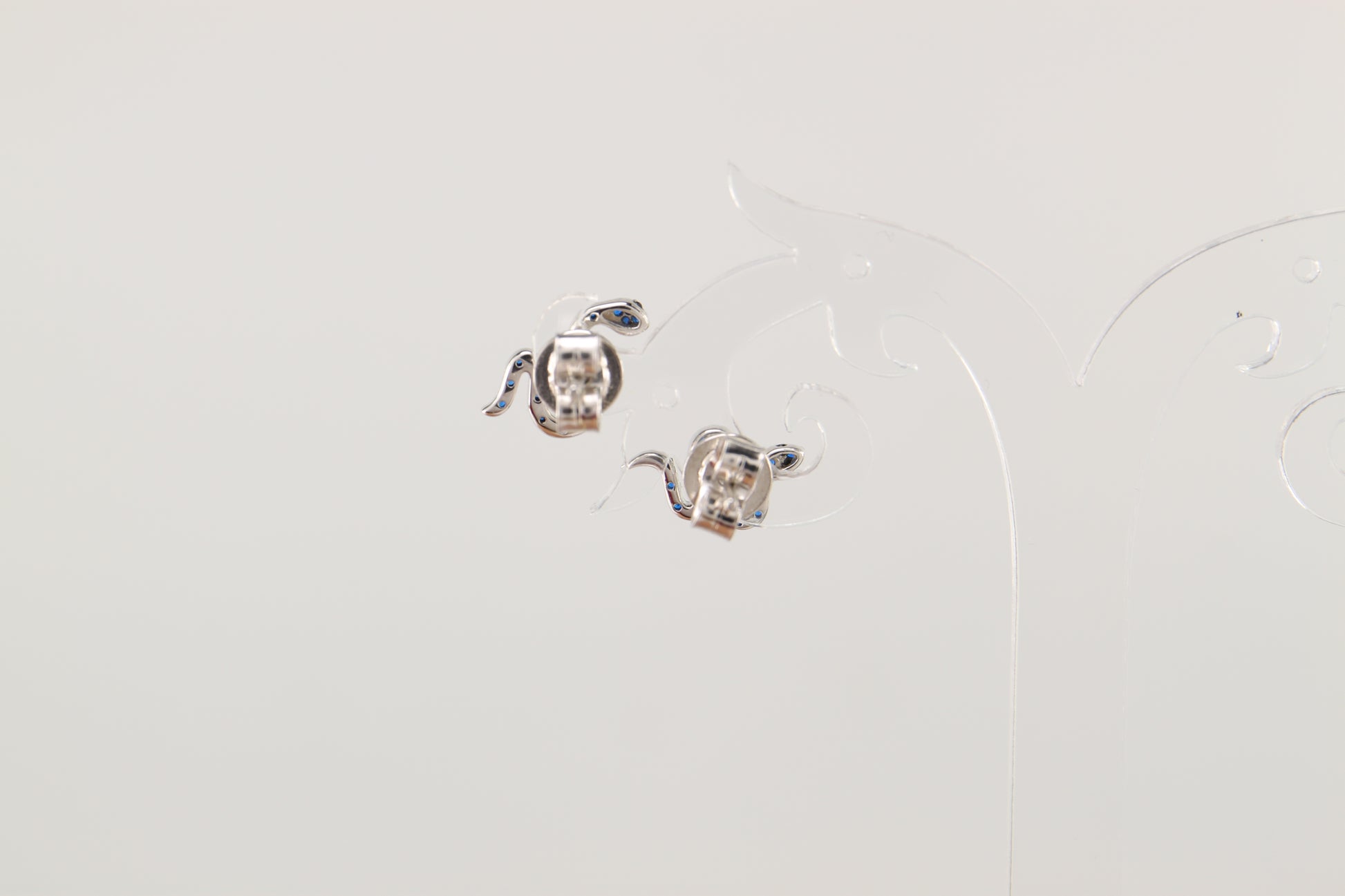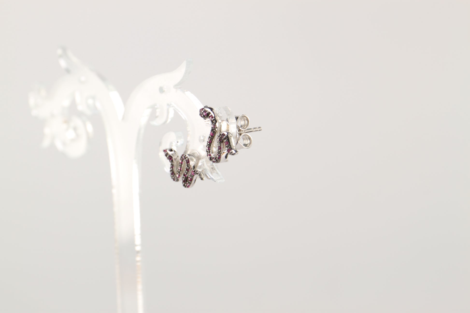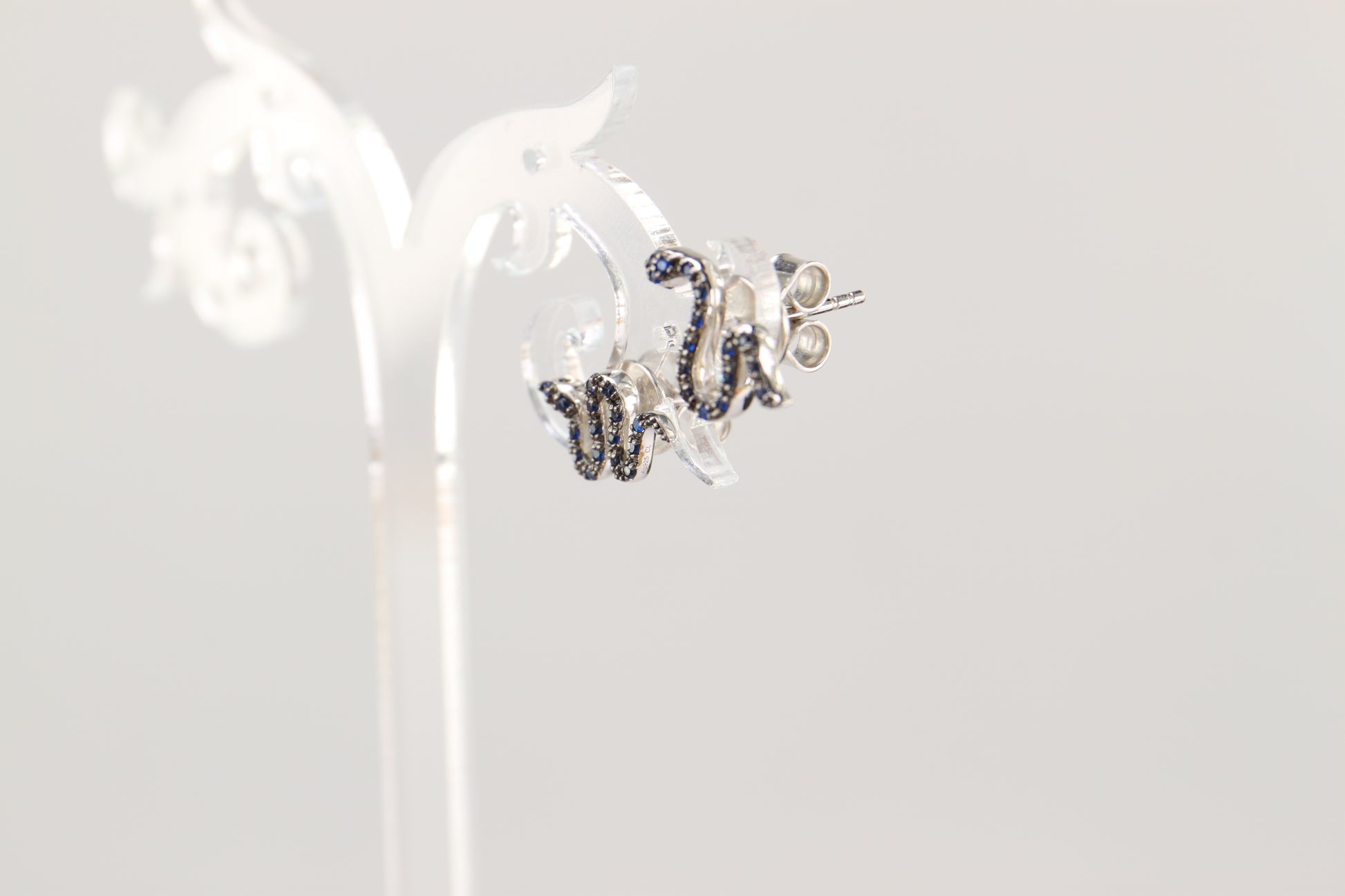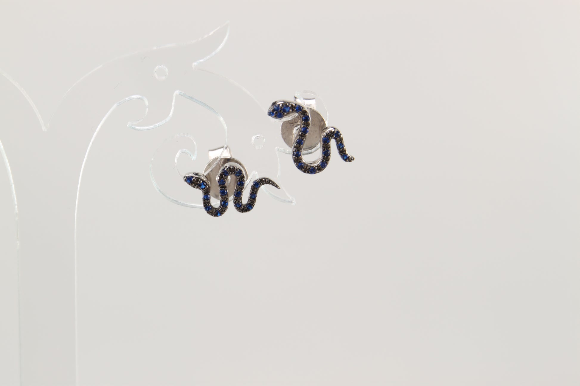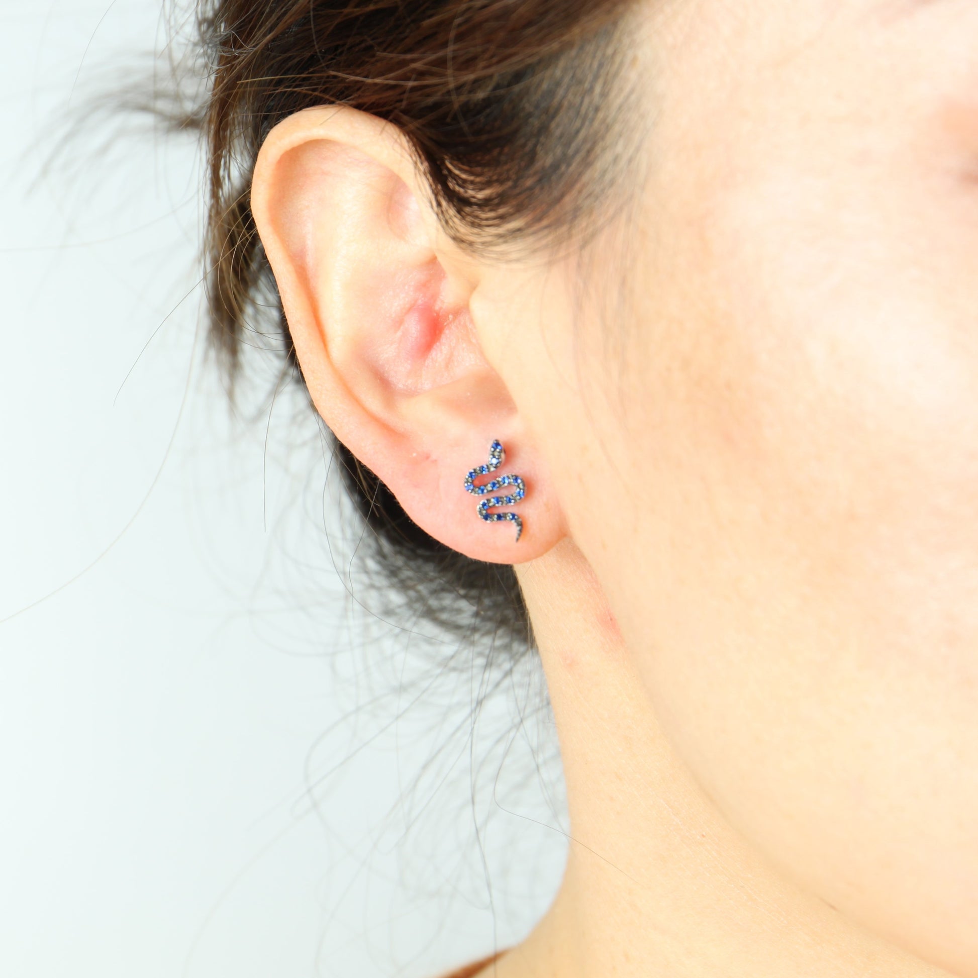 925/1000 Solid Silver With White Black Rhodium Plated Pink Blue Green Stones Snake Earrings