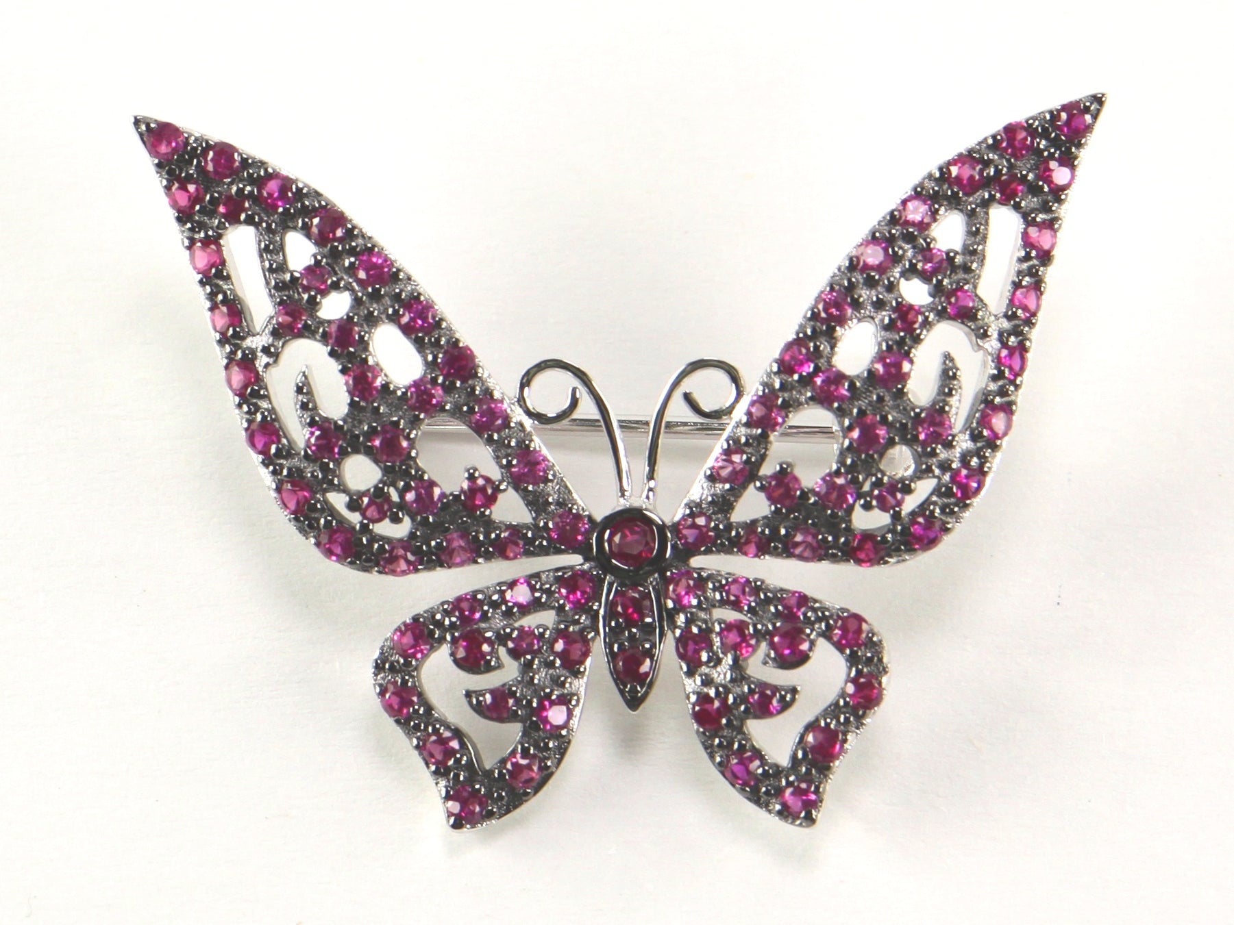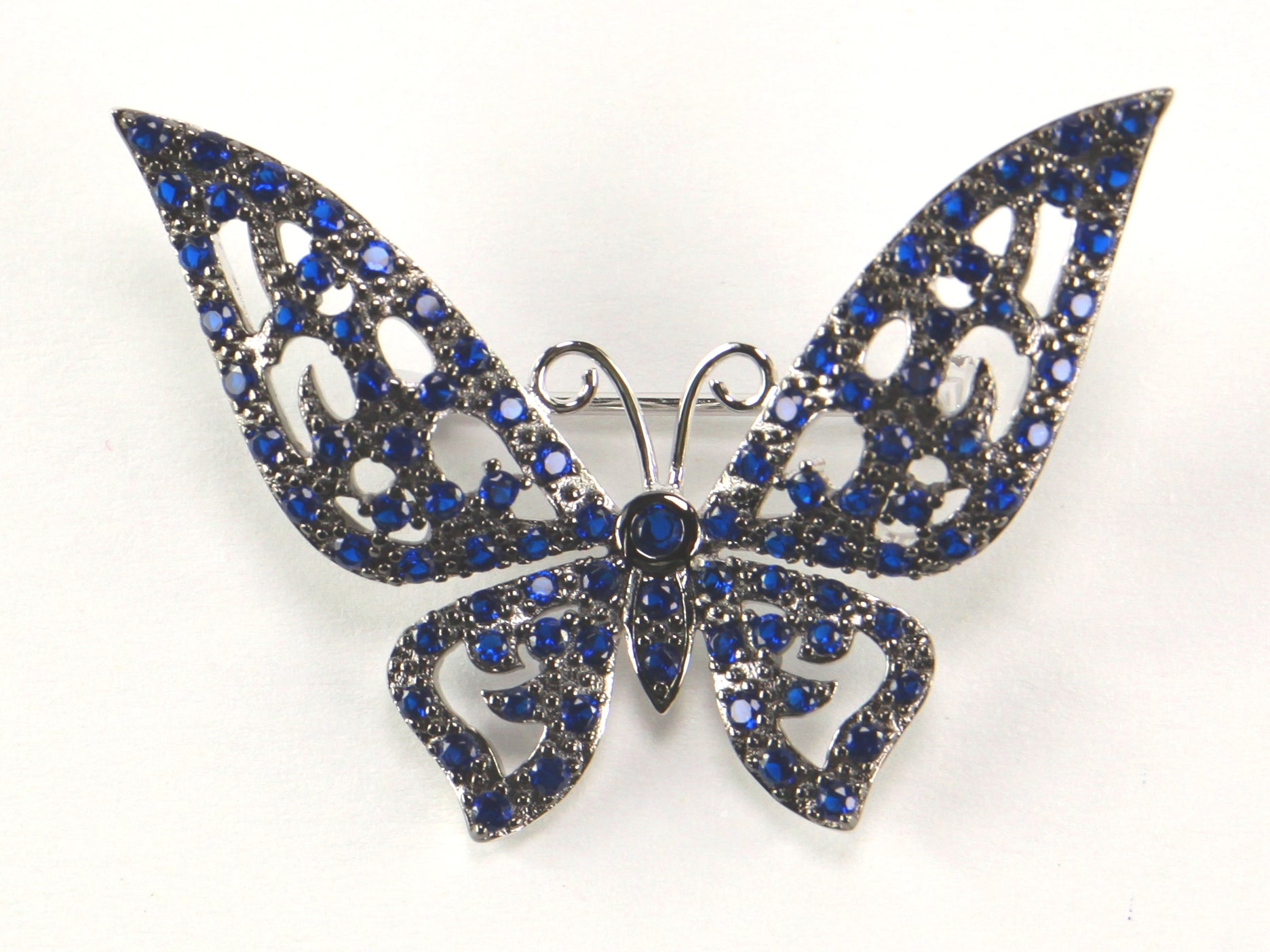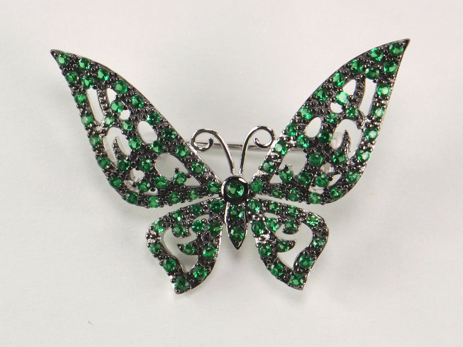 925/1000 Solid Silver With White Black Rhodium Green Pink Blue Stone Butterfly Brooch
